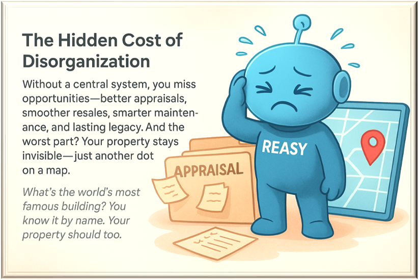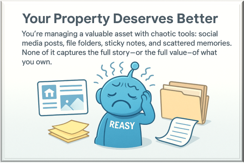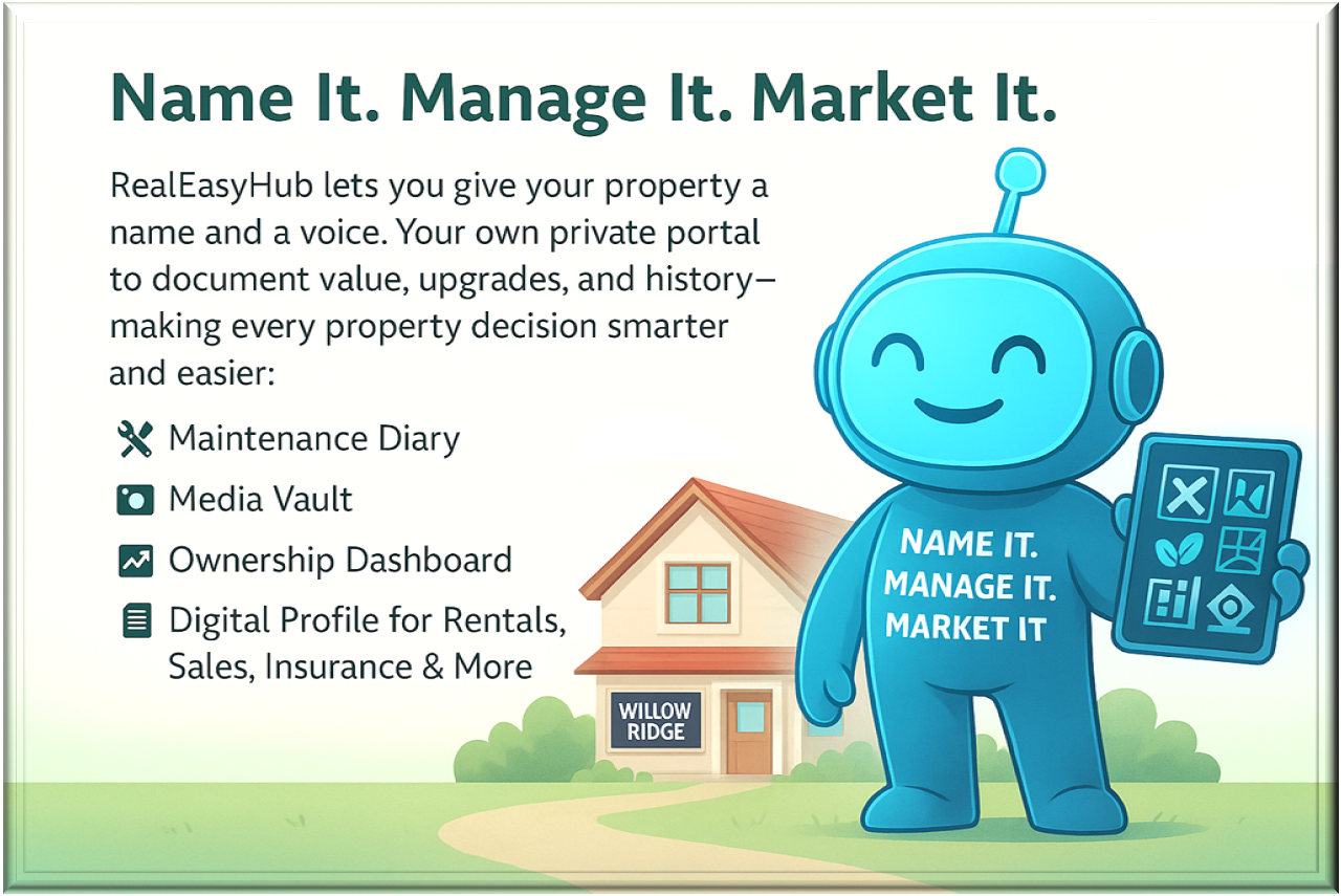 Start building your listing — or Pre-Listing — today with RealEasyHub! Reasy can help with naming, property diaries, appraisal insights, meta-search tools, and other features. Be ready when opportunity knocks.